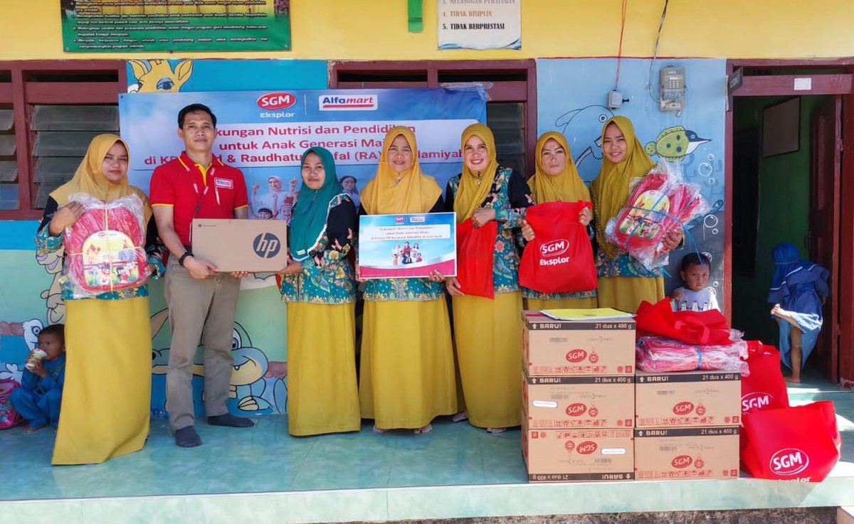 Total yang dibagikan SGM bersama Alfamart kali ini berupa 40.000 pax susu, ribuan paket buku pendidikan, 5000 tas sekolah, 5000 paket peralatan sekolah dan 250 laptop untuk sekolah PAUD dan siswa-siswinya.