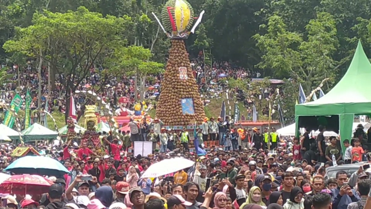 Bupati mengatakan usai acara seremonial berupa sambutan selesai, dan tumpeng durian dikeluarkan semua warga mengikuti tahapan hingga selesai.