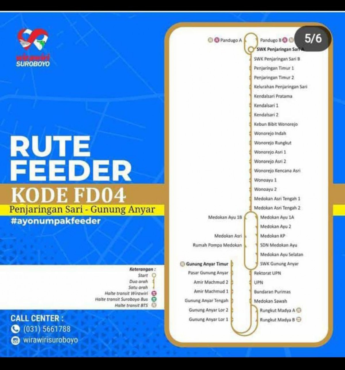 Berikut rute dan titik pemberhentian Feeder Wira Wiri Suroboyo: