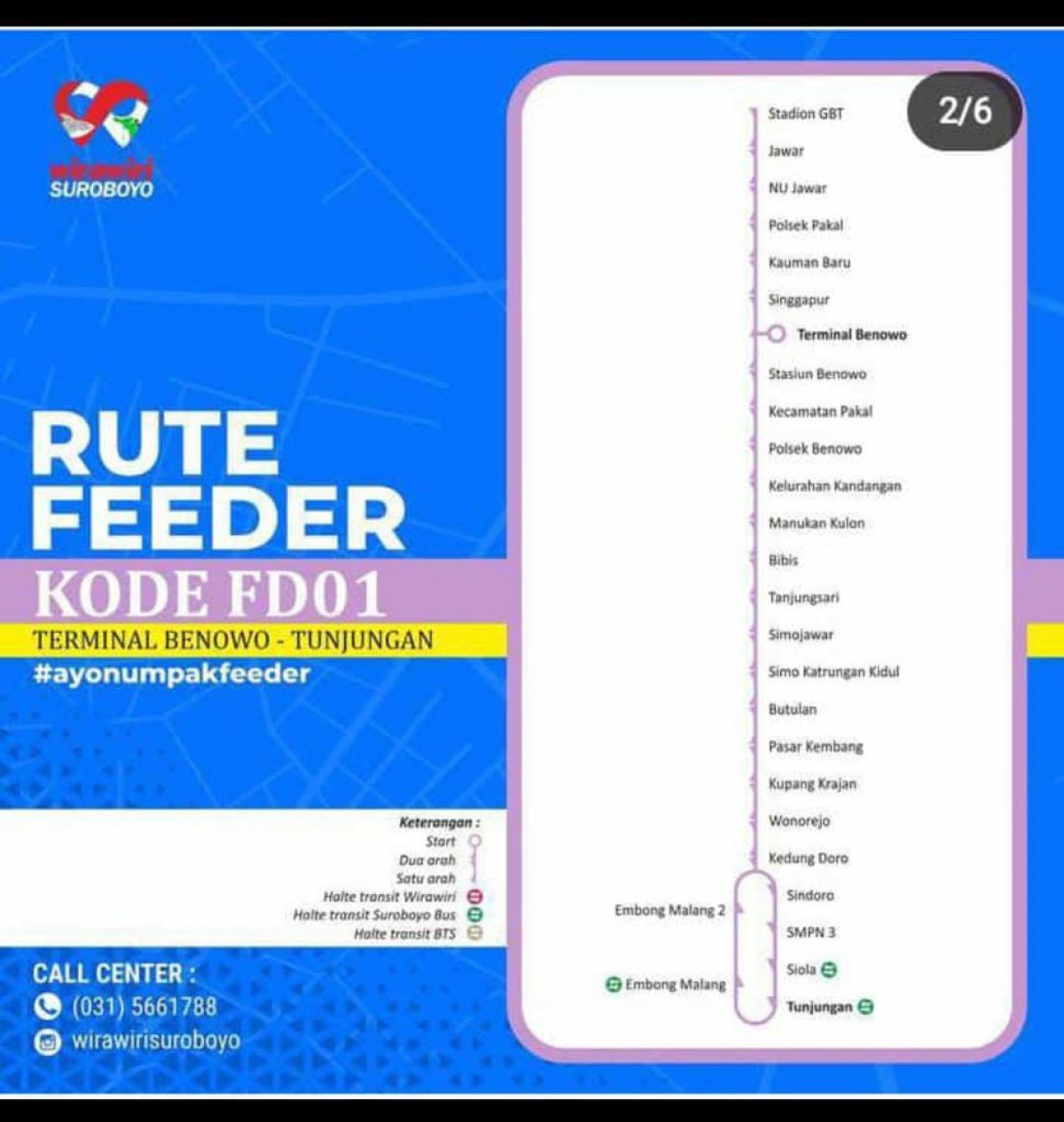 "Rute Feeder Kode FD01 dari Terminal Benowo-Tunjungan ada 27 titik pemberhentian. FD02 rute PNR Mayjend Sungkono-Embong Wangu ini ada 37 titik," jelas Eni saat dikonfirmasi jatimnow.com, Senin (6/3/2023).