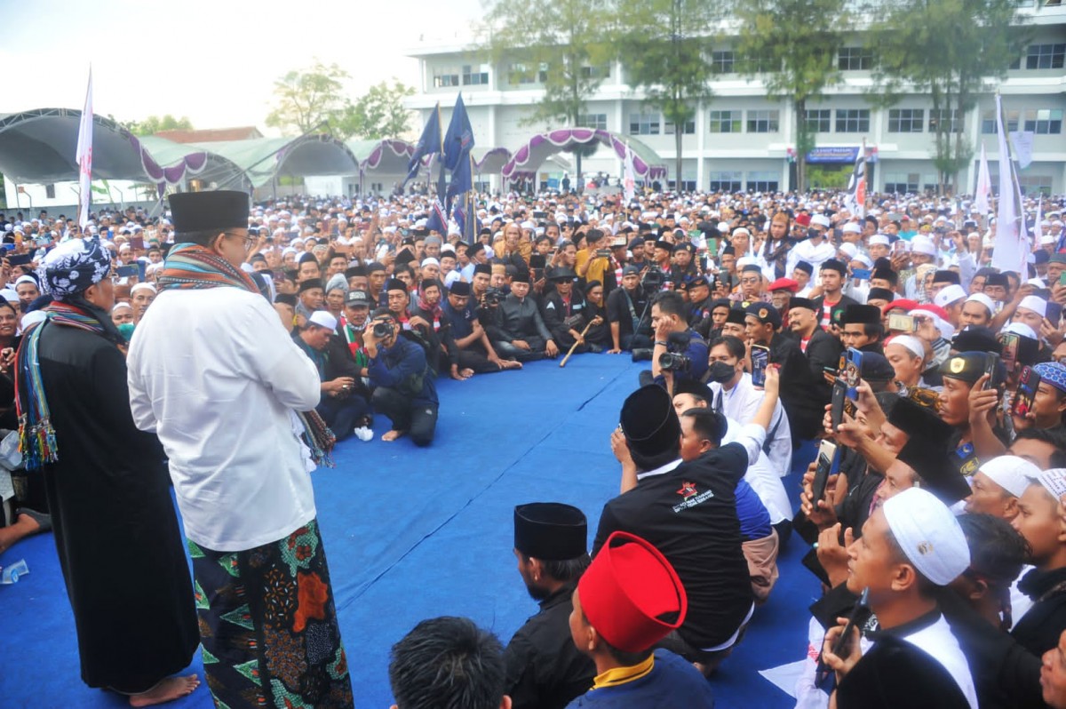 Setengah jam kemudian, Anies menyapa ribuan santri dan warga. Dia menyampaikan terima kasihnya atas sambutan luar biasa ribuan warga dan santri. Termasuk sambutan dari para ulama yang menerima kehadirannya dengan baik di Madura.