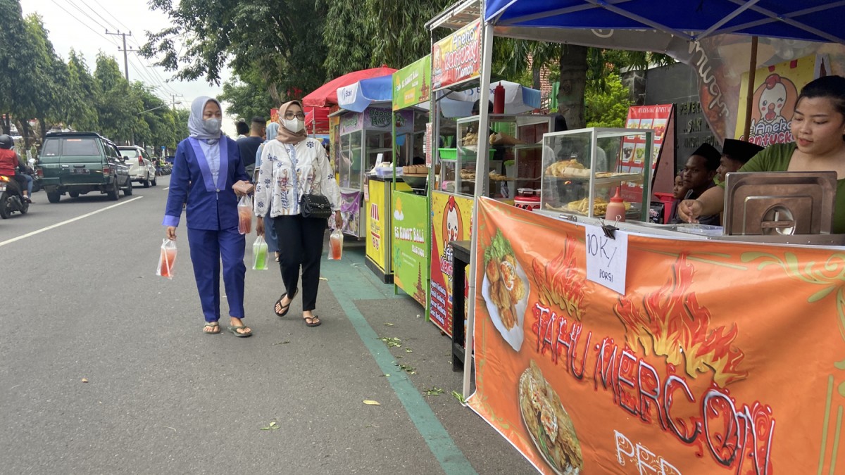 Di sepanjang jalan ini kini berjajar puluhan pedagang takjil dan makanan untuk berbuka puasa. Ada gorengan, jajanan pasar hingga street food ala Jepang dan Korea.
