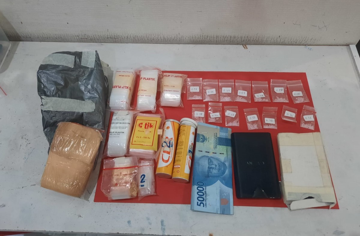 "Kami juga menyita buku catatan penjualan sabu, uang tunai hasil penjualan sabu sebesar Rp1,6 juta, 3 ponsel, timbangan elektrik, 7 bendel plastik klip, 2 botol CDR, 2 spons dan 1 plastik hitam," bebernya.