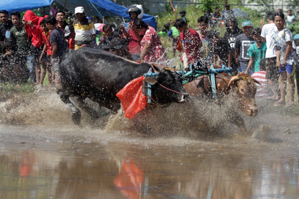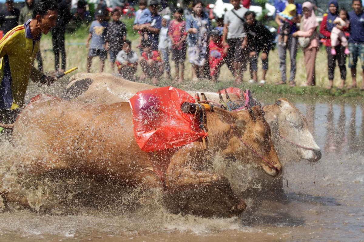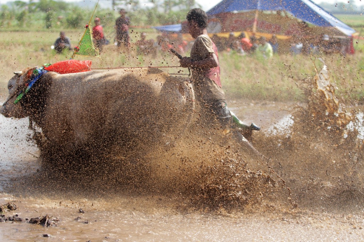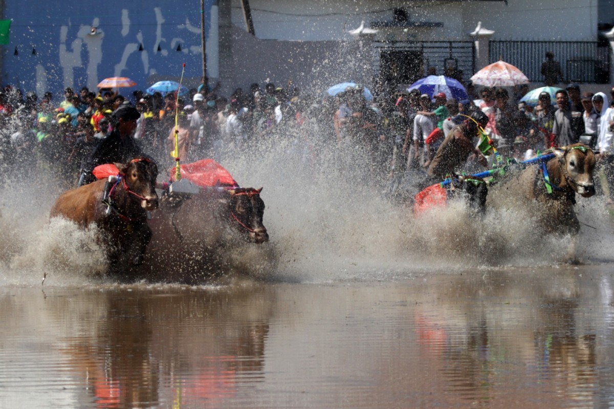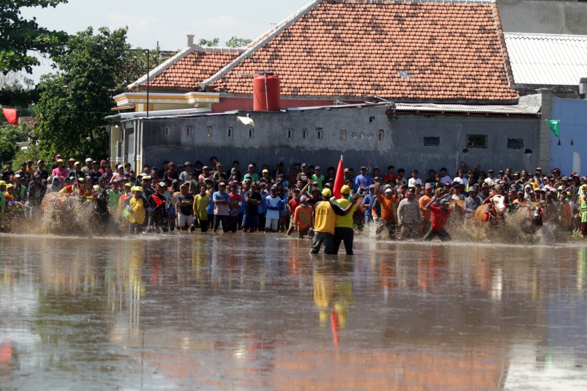 Berikut foto-foto keseruan Karapan Sapi Brujul di Kota Probolinggo: