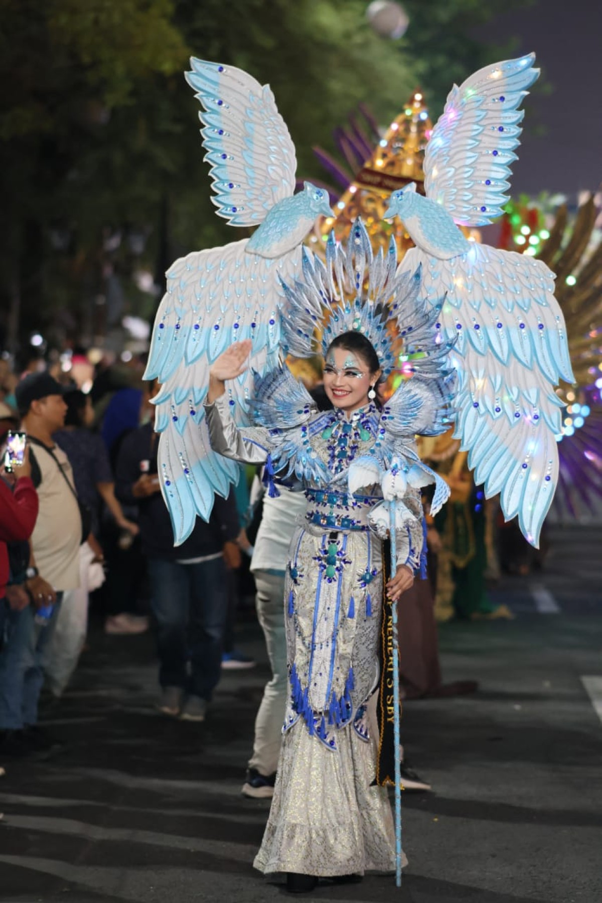 Time Out Senin, 29 Mei 2023 08:05 WIBjatimnow.com - Seorang siswi sekolah menengah pertama (SMP) menarik perhatian saat Light Parade dalam Surabaya Vaganza Sabtu (27/5/2023) malam. Dengan mengenakan busana bersayap bak malaikat atau angel berwarna putih kombinasi biru, siswi itu terlihat begitu cantik, elegan dan memikat mata.