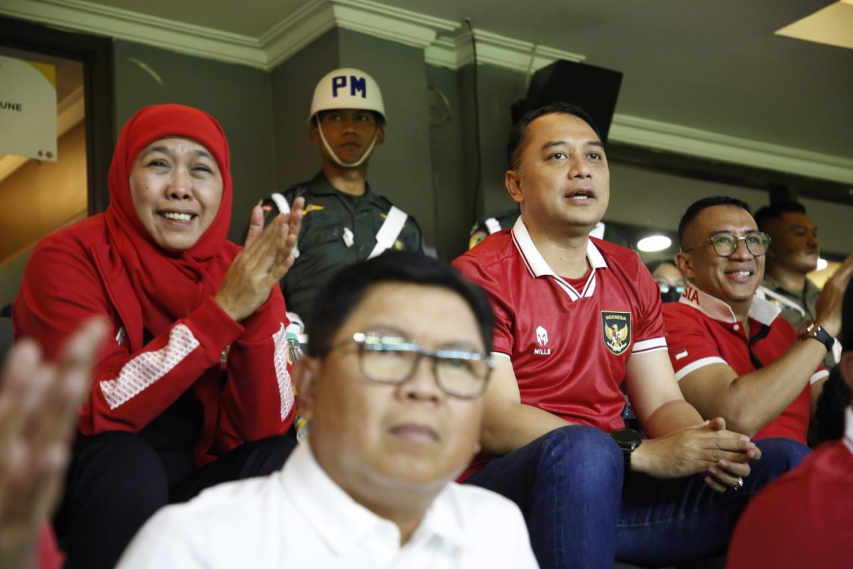 FOTO: Khofifah - Eri Cahyadi Kompak Support Timnas Indonesia di Gelora Bung Tomo