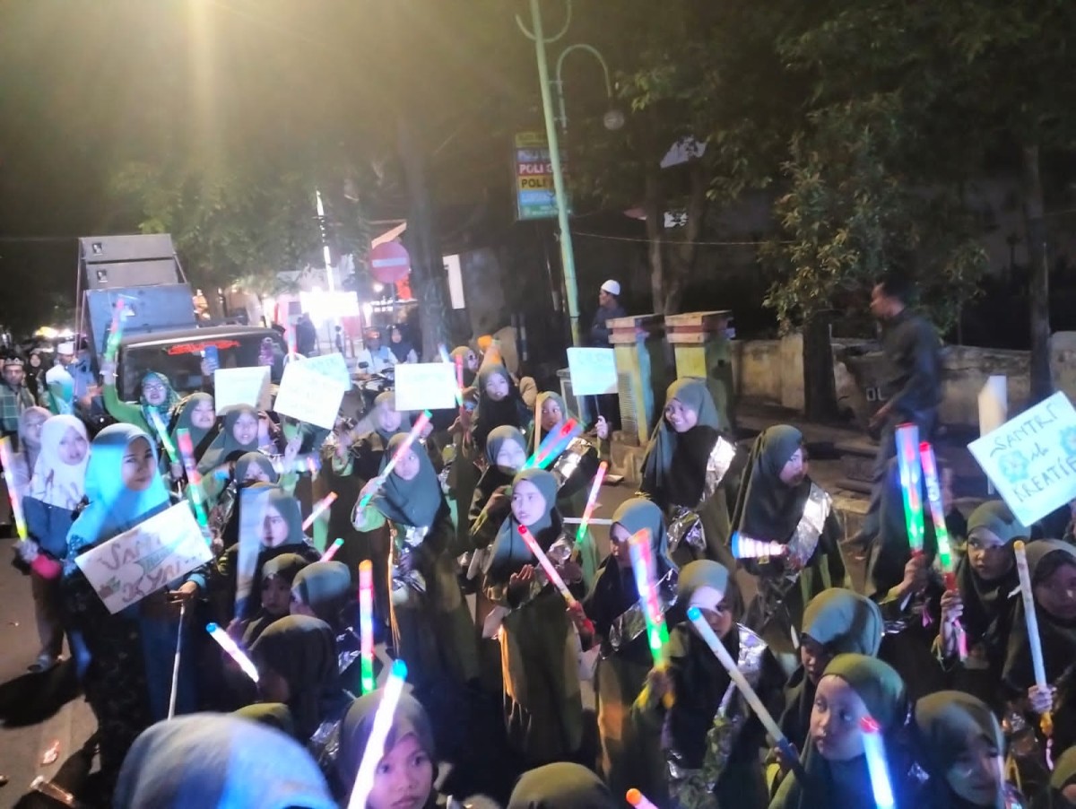 Santri TPQ dan Madin dari ratusan lembaga pendidikan Islam itu, membentangkan sejumlah spanduk dan poster, umbul-umbul bertuliskan Hari Santri Nasional serta membawa aneka lampu hias.