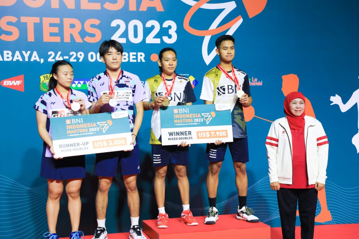 "Selamat pada Jafar dan Aisyah juara ganda campuran yang meraih medali emas dalam Indonesia Masters Super 100 kali ini. Terima kasih atas seluruh perjuangan yang diberikan yang telah mengharumkan nama Indonesia di kancah dunia," tegas Gubernur Khofifah.