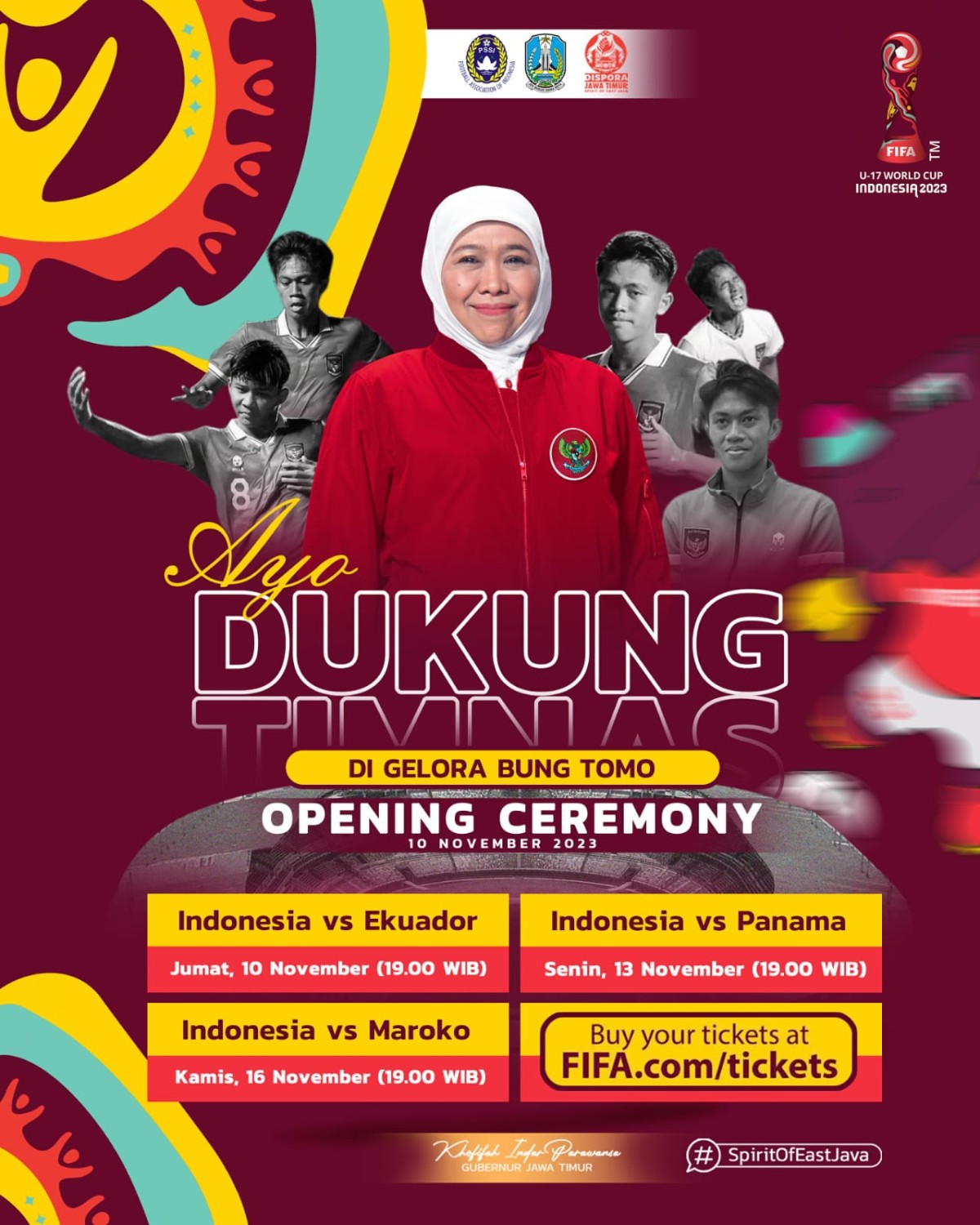 Sebagaimana diketahui, Tim Piala Dunia U-17 yang akan bertanding di Surabaya adalah Timnas Indonesia, Panama, Ecuador, Maroko, Mali, dan Canada serta hasil tim negara yang akan lolos di babak 16 besar.