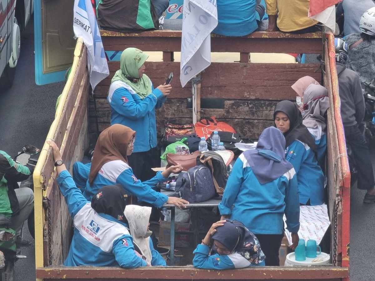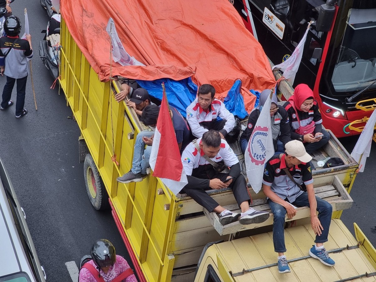 Foto: KBS hingga Jalan Basuki Rahmat Surabaya Lumpuh Total karena Demo Buruh