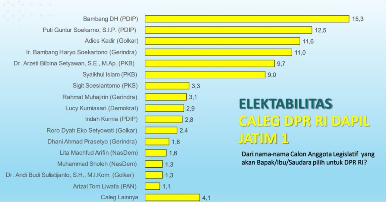 Elektabilitas Caleg DPR RI Dapil Jatim I