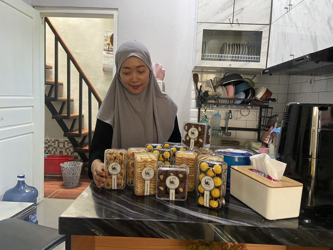 Meskipun dapurnya kecil, namun Ines mampu mengerjakan pesanan dengan telaten, dimulai dari subuh. Dia membuat berbagai jenis kue kering, termasuk nastar, sambil juga menjaga anaknya yang masih kecil.