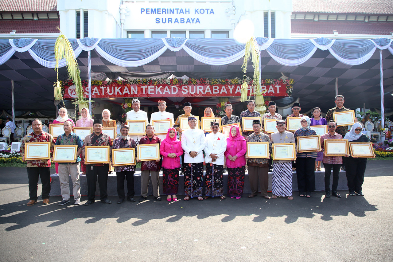 Upacara ini disemarakkan pagelaran kolaborasi seni-budaya, penyerahan 272 piagam penghargaan, hingga launching Pos Bantuan Hukum serentak di 1.368 Balai RW Surabaya.