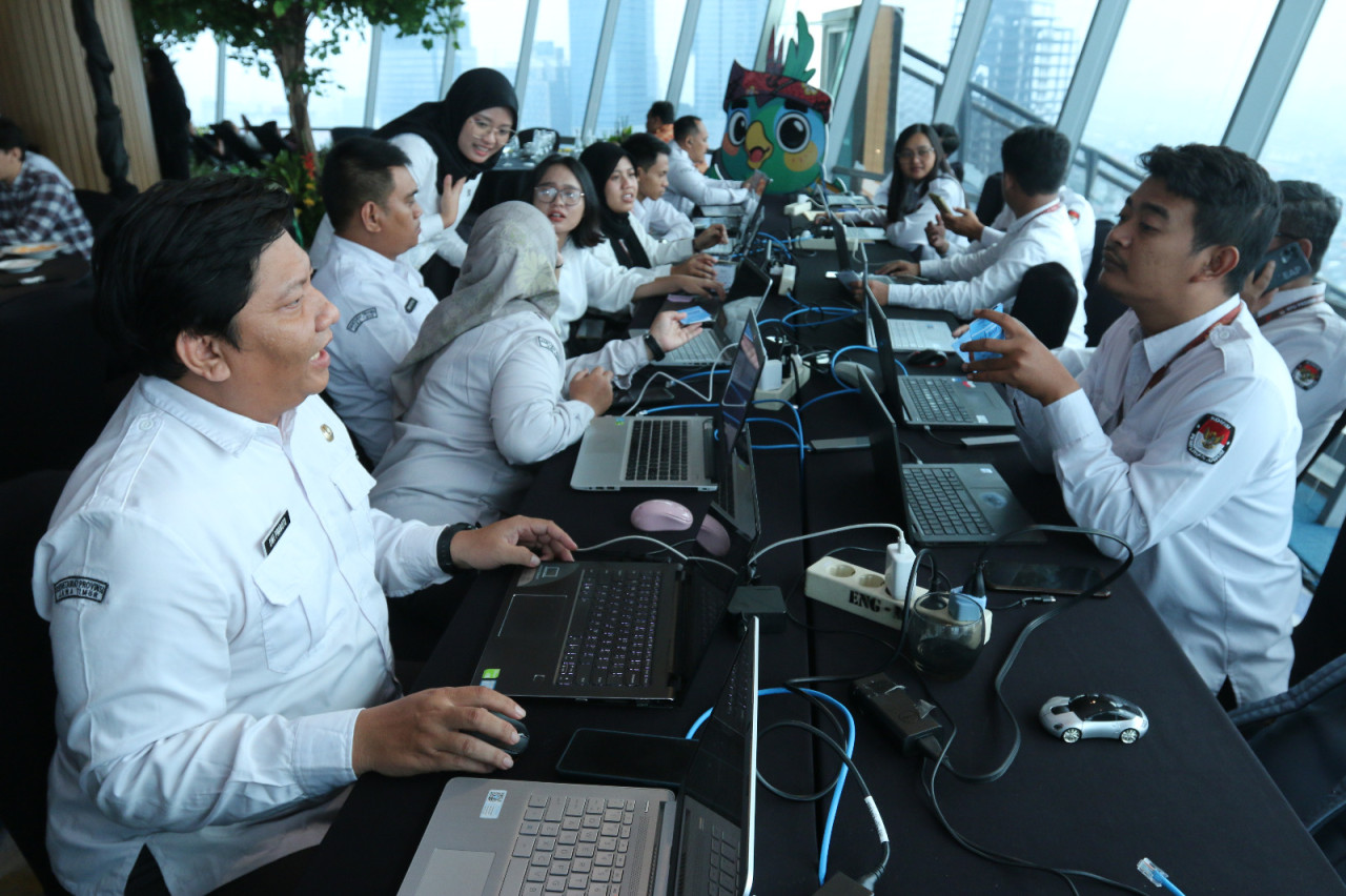 "Keberadaannya di sini, di lantai 23 ini (Hotel Double Three). Terkait pelaksanaan pemilu semua bisa diakses disini, misalnya di TPS X di desa Z Kecamatan Y itu koordinatnya dimana bisa dipantau disini. Berapa jumlah surat suara dan yang dipakai. Juga jumlah TPS di desa mana dan jumlah pemilihnya bisa diketahui, termasuk jika ada informasi dari siapapun bisa diakses di sini," tambah dia.