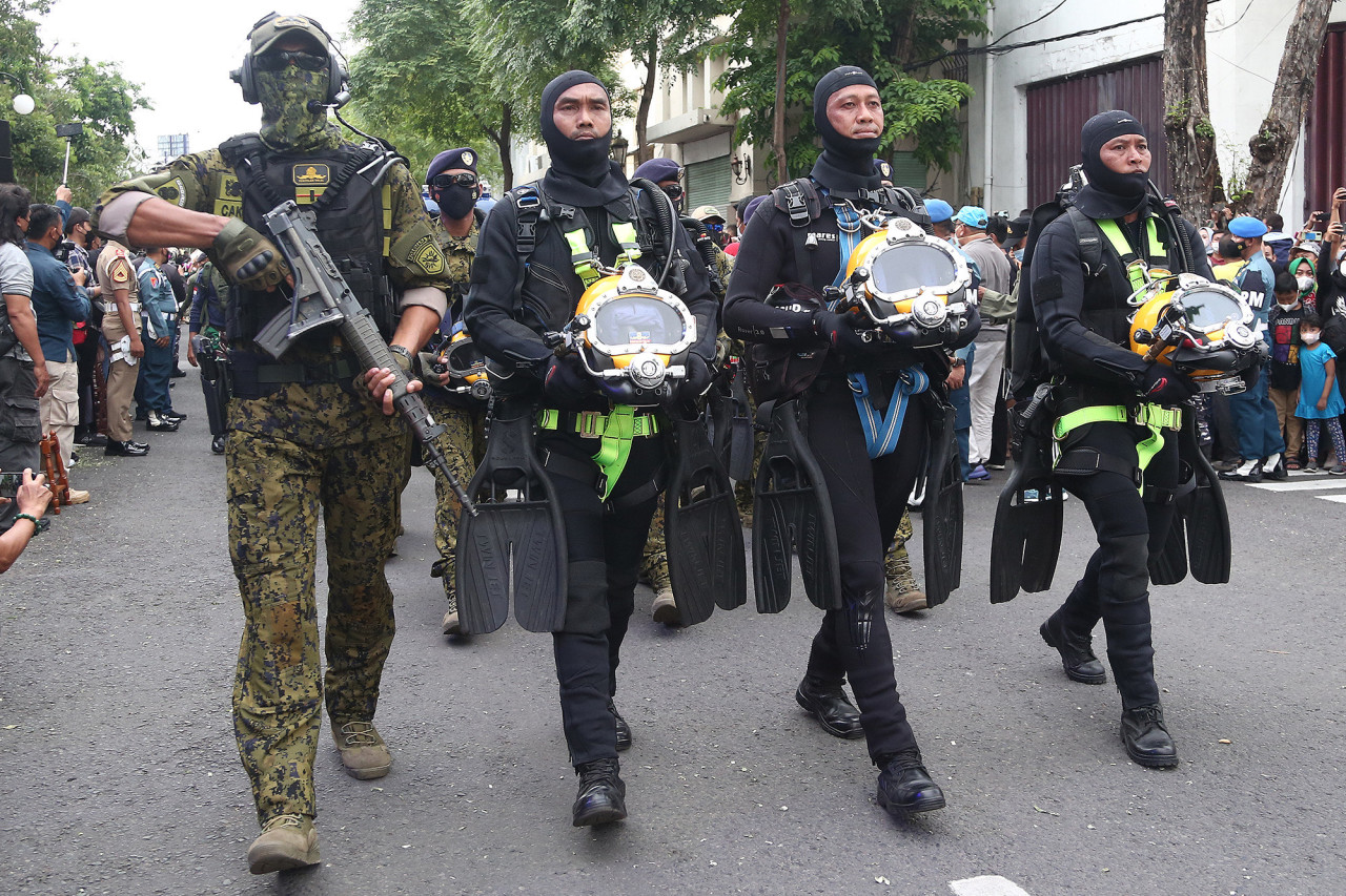 FOTO: Kemeriahan Parade Alutsista Angakatan Laut di Surabaya
