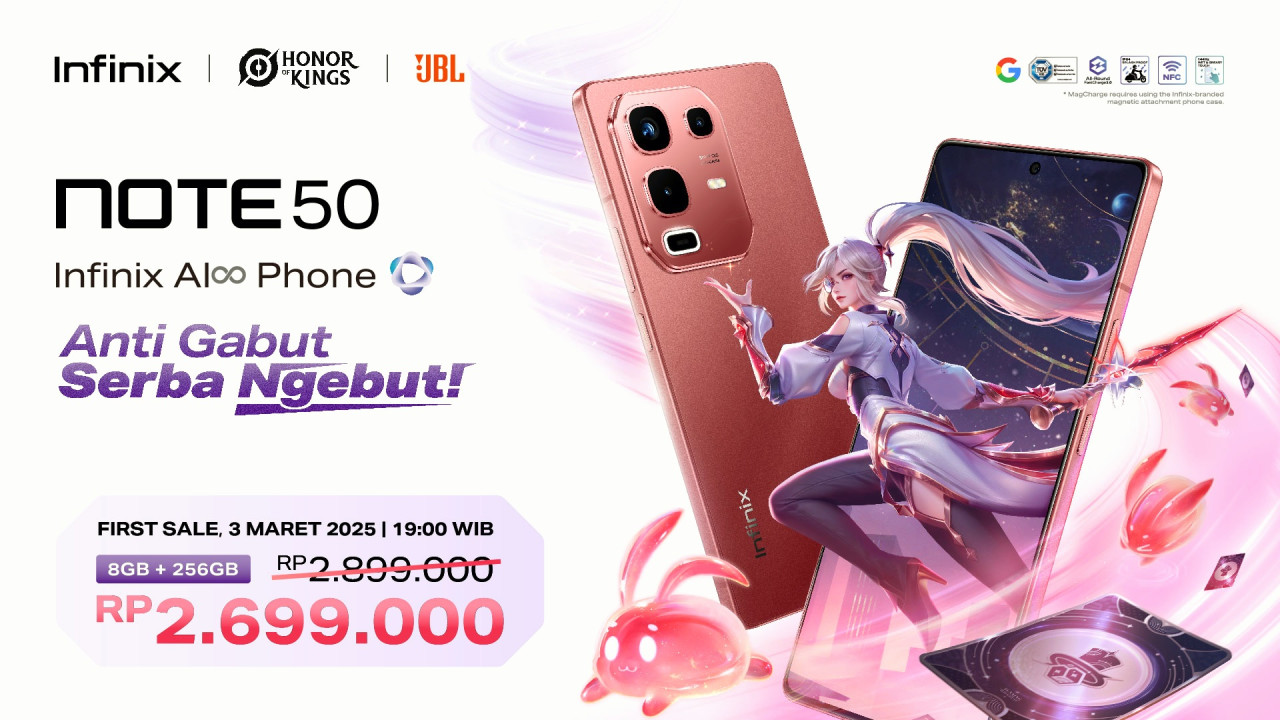 Infinix NOTE 50 dijual dengan harga resmi Rp2.899.000, sementara NOTE 50 Pro dibanderol Rp3.199.000. Selama periode peluncuran, tersedia harga spesial Rp2.699.000 untuk NOTE 50 dan Rp2.999.000 untuk NOTE 50 Pro.