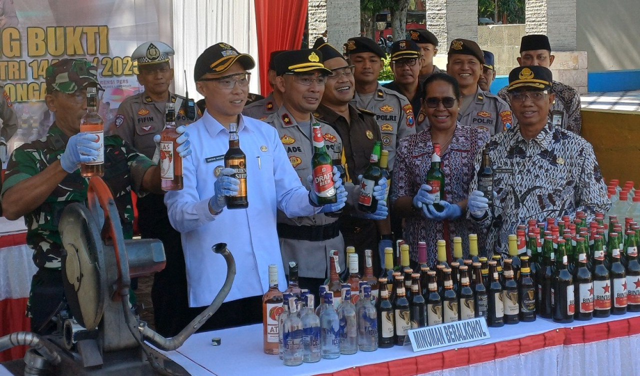 Untuk minuman keras dimusnahkan dengan menggunakan alat berat dan knalpot brong dihancurkan dengan cara dipotong. Minuman keras dan knalpot brong ini merupakan hasil razia petugas di bulan Ramadan.