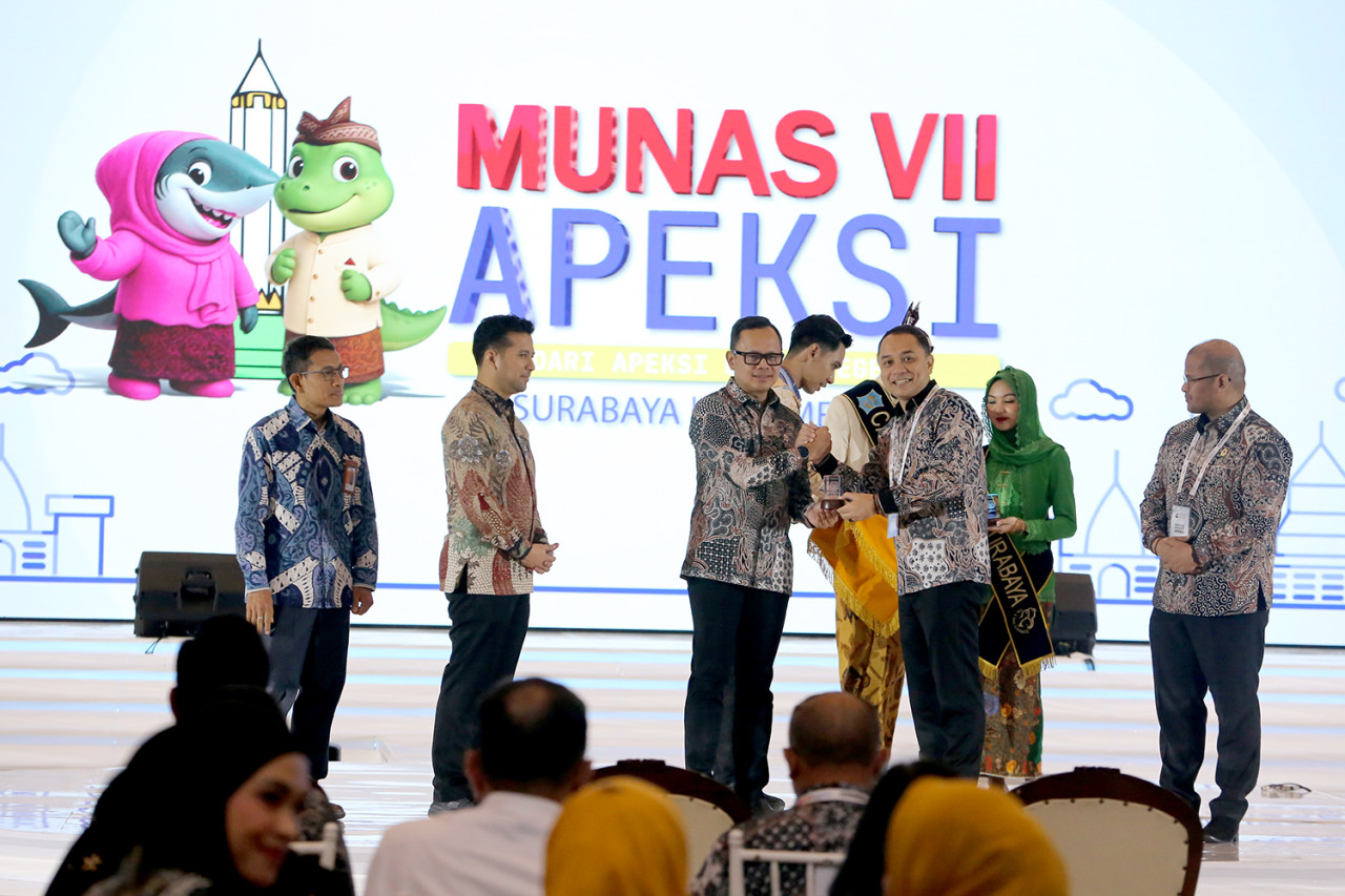 Munas VII APEKSI 2025 dibuka oleh Wakil Menteri Dalam Negeri (Wamendagri) Republik Indonesia, Bima Arya Sugiarto, didampingi Wali Kota Surabaya sekaligus Ketua Dewan Pengurus APEKSI, Eri Cahyadi.