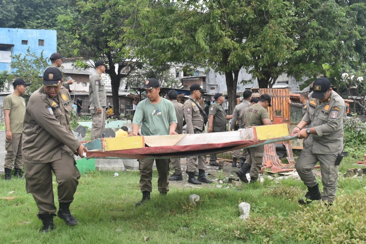 Kasi Trantibum Kecamatan Simokerto, Bagoes Hanindyo Retno menjelaskan, selain bekupon, pihaknya juga menertibkan lapak-lapak kayu Pedagang Kaki Lima (PKL), kandang hewan ternak, dan tempat penimbunan barang rongsokan di sepanjang sisi depan dan belakang makam.