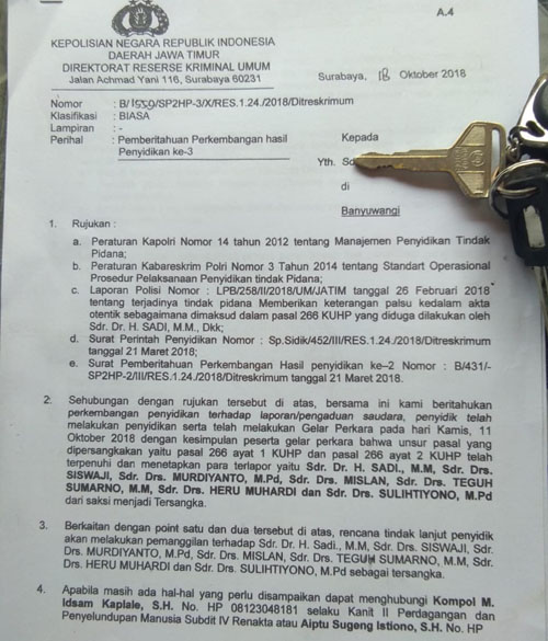 Sebelumnya, Kepala Dinas (Kadis) Pendidikan Kabupaten Banyuwangi, Sulihtiyono, 2 orang rektor perguruan tinggi swasta dan 4 pengurus PPLP ditetapkan sebagai tersangka oleh Ditreskrimum Polda Jatim.
