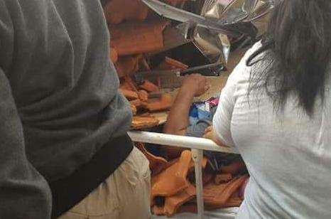 3. Salah seorang pasien hanya terlihat bagian tubuhnya saja, saat tertimpa material atap bangunan.
