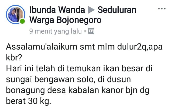 Ikan raksasa ini dikabarkan akun bernama Bunda Wanda ditangkap di Dusun Bonagung, Desa Kebalen, Kecamatan Kanor.